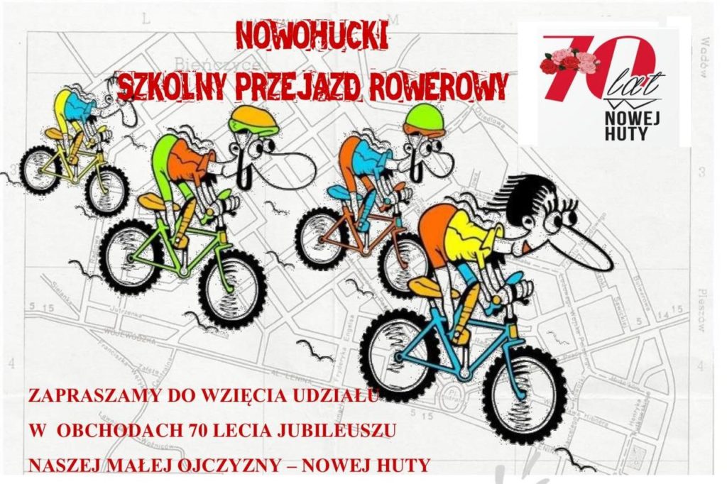 Tradycyjnie przemierzymy główne ciągi Nowej Huty – najmłodszej z czterech dużych dzielnic Krakowa. Zaczynamy przy Szkole Podstawowej Nr 105 z Oddziałami Integracyjnymi, na os. Słonecznym 12, o godz. 9:45 na boisku sportowym przy szkole. Przejazd organizujemy z okazji 70-lecia Nowej Huty oraz Europejskiego Tygodnia Zrównoważonej Mobilności.