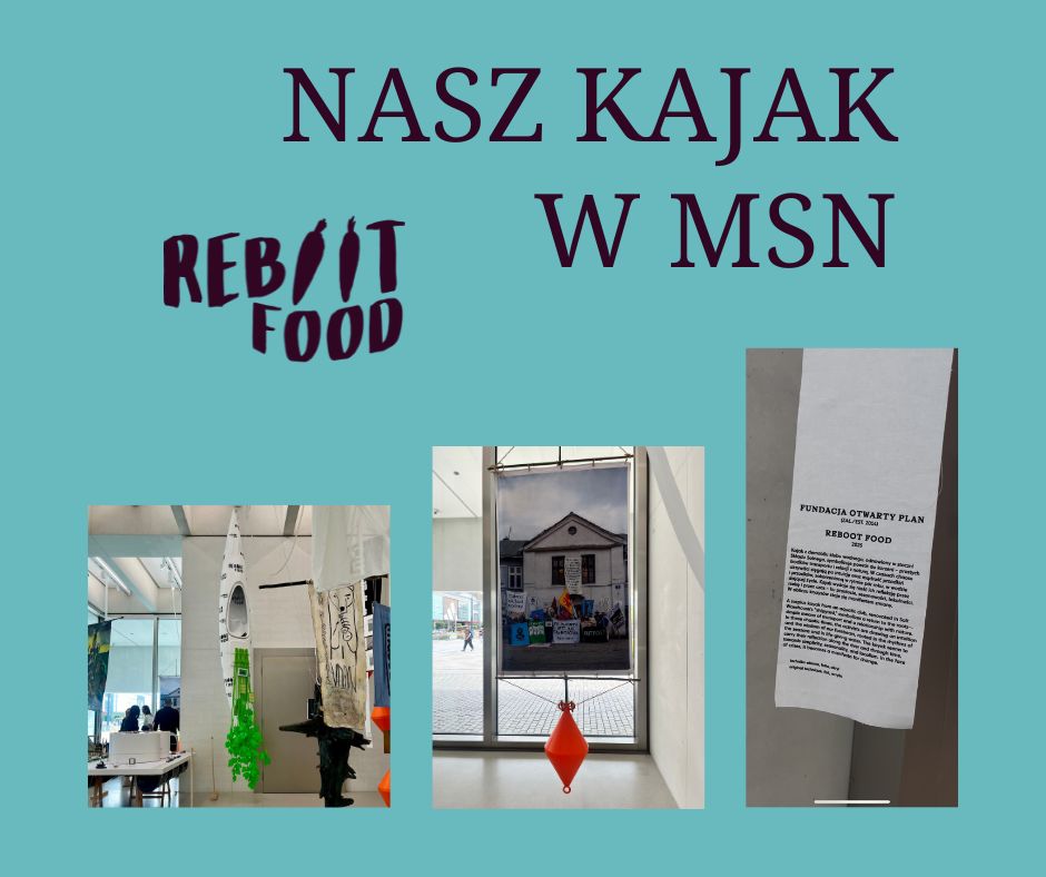 Jako Fundacja Otwarty Plan jesteśmy obecni na wystawie z kajakiem Reboot Food. Kajak symbolizuje powrót do korzeni – prostych środków transportu i uważnej relacji z naturą. W obliczu kryzysów staje się obiektem-manifestem, przypomnieniem o tym, że zmiany są możliwe także w codziennych praktykach.
