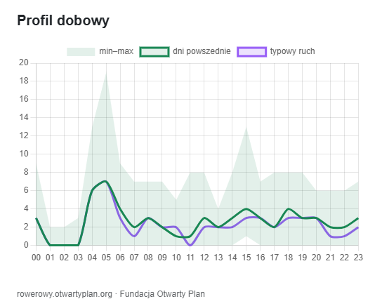 Dane z wszystkich 19 liczników mierzących ruch rowerowy w Krakowie całodobowo plus dane z 4 czujników rejestrujących przejazdy użytkowników rowerów w świetle dziennym możesz poznać na stronie rowerowy.otwartyplan.org/dane/